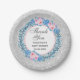 Silver Pink Blue Floral Rose Thank You Baby Shower Paper Plate
