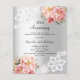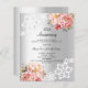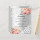 An elegant and romantic 25th wedding anniversary invitation. A faux silver looking background decorated with pink and rose gold florals, roses and white lace. Personalise and add your names and details.