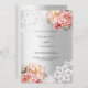 For an elegant and romantic 25th wedding anniversary. A faux silver looking background decorated with pink and rose gold florals, roses and white lace. Personalise and add your names and details.