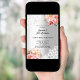 For an elegant and romantic 25th wedding anniversary. A faux silver looking background decorated with pink and rose gold florals, roses and white lace. Personalise and add your names and details.