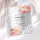 For an elegant 60th (or any age) birthday party. A faux silver looking background decorated with pink and rose gold florals, roses, diamonds and white lace. Personalise and add your names and details.