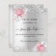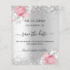 A modern and elegant Save the Date for a wedding. A faux silver looking background decorated with pink and white roses, florals. Personalise and add a date and your names. The text: Save the Date is written with a large trendy hand lettered style script.