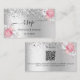 Silver pink florals wedding website RSVP QR code Enclosure Card