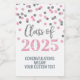 Graduation party custom mini wine bottle labels class of 2025 with silver and pink glitter pattern confetti.