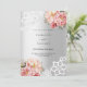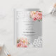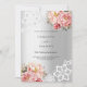 For an elegant and romantic 25th wedding anniversary. A faux silver looking background decorated with pink florals, roses and white lace. Personalise and add your names and details.