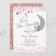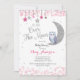 Over the Moon Baby Shower Invitation for girl with a moon, stars, and beautiful faux gold glitter.