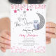 Silver Pink Owl Moon Baby Shower Invitation