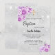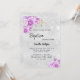 A faux silver looking background with faux silver sparkles and pink and violet flowers. Personalise and add a name and the details.
