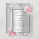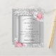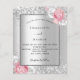 Faux silver looking background decorated with blush pink and white florals, flowers and faux silver glitter, sparkles. Personalise and add your names and wedding details. Black letters.