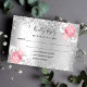 Silver pink white florals glitter wedding RSVP Card