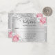 A faux silver metallic looking background, decorated with sparkling faux glitter and blush pink and white florals. Personalise and add the reply by date and your names.