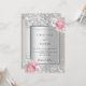 Faux silver looking background decorated with blush pink and white florals, flowers and faux silver glitter, sparkles. Personalize and add your names and wedding details. Black letters.