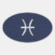 Silver Pisces Zodiac Sign Blue Carbon Fiber Print Oval Sticker