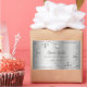 Make a lasting impression with this elegant and modern product label design featuring pretty squiggled silver ornate corners with cute hearts on a luxury shimmery silver coloured background.