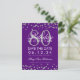 Elegant "80th Birthday Party" design with Silver Faux Glitter Confetti Purple and custom name and details text. Easy to use and easy to personalise. Order Today!