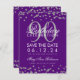 Silver Purple 90th Birthday Save Date Confetti Invitation