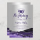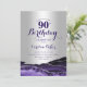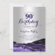 Purple and silver agate 90th birthday party invitation. Elegant modern design featuring watercolor agate marble geode background, faux glitter silver and typography script font. Trendy invite card perfect for a stylish women's bday celebration. Printed Zazzle invitations or instant download digital printable template.