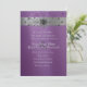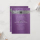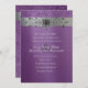 This wedding invitation features an image of a shiny metal background in silver and purple (orchid, eggplant, lapis, violet, amythest), with floral tracery that looks embossed. Very elegant and fancy.