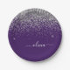 Silver Purple Glitter Girly Monogram Name Paper Plate