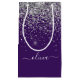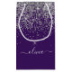 Silver Purple Glitter Girly Monogram Name Small Gift Bag