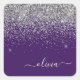 Silver Purple Glitter Girly Monogram Name Square Sticker