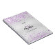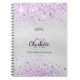 A faux silver metallic looking background decorated with purple faux glitter dust. Personalize and add your first name, monogram initials, full name and a year.