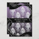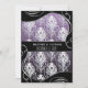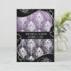 Silver Swirl & Purple Peacock Feather Wedding Invitations-- feature an elegant white feather pattern over top a gradient background of lavender, purple, plum & black. The front also features a black and silver frame with swirls for added flair. These peacock feather wedding invitations are set to high quality basic card stock; however, you can change the stock to linen, felt (embossed), recycled, and several metallic shades if you would like under number 2 (choose your style, size & paper type) below the orange add to cart button. A list of the additional costs for a fancier card stock are displayed also under that option. Each invitation comes with a fitted white envelope.