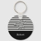 Your name on a keychain featuring a race horse in faux silver glitter on black and white stripes at the top and a solid black area at the bottom. MATCHING items in our collection.