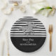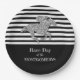 Party paper plates - in 2 sizes - feature a race horse in faux silver glitter on black and white stripes at the top and a solid black area at the bottom for your custom personalisation. Change the wording, change the fonts, change the font colours for your party, birthday party, retirement party, Derby party, Derby bridal shower and more. MATCHING items in our collection.