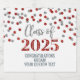 Graduation party custom champagne bottle labels class of 2025 with silver and red glitter pattern confetti.