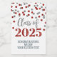 Graduation party custom mini wine bottle labels class of 2025 with silver and red glitter pattern confetti.