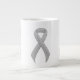 Silver ribbon with the words "support awareness" on it.. The silver ribbon is associated with Elderly Abuse Awareness in May, Dyslexia Awareness in October, Disabled Children Awareness, and Encephalitis Awareness.