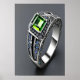 A fancy cool Silver ring, green and blue gemstone with a unique design. This is a AI generated art.