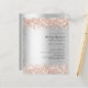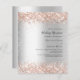 A faux silver looking background. Decorated with rose gold faux glitter. Personalise and add your names and reception details.