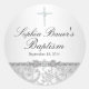 Baptism Sticker. Elegant silver rose & diamond cross. Exclusive Zazzle. Customise with your own details. PLEASE NOTE all flat images! They Do NOT have real lace, Diamonds or Jewels!!
