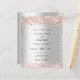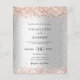 A modern, formal wedding invitation. A faux silver looking background. Decorated with rose gold faux sparkles, confetti. Personalise and add your names and party details.