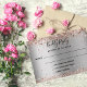 A faux silver looking background, decorated with rose gold confetti.Personalise and add the reply by date and your names.