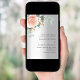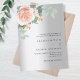 A faux silver looking background. Decorated with a rose gold and blush pink floral, rose flower and green watercolored eucalyptus greenery and faux gold sprigs. Personalise and add your names and wedding details.