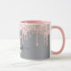 Elegant, glamourous gift for a friend, mother, sister or for yourself. Daux silver metallic looking background. Trendy rose gold, blush pink faux glitter drips, paint dripping look. Personalise and add a name and monogram letter. The name is written with a hand lettered style script with swashes. Rose gold and black coloured letters. To keep the swashes only delete the sample name, leave the spaces or emoji's in front and after the name.