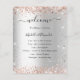 A modern, elegant wedding program, timeline. A faux silver looking background decorated with rose gold faux glitter, sparkles. Personalise and add your names and wedding details. Black coloured letters. If you have more text it's possible to reduce the line space.