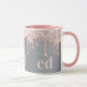 Silver rose gold monogram glitter drips mug