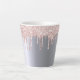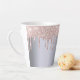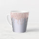 An elegant, girly and glam mug. Faux rose gold drip, paint drip.  Chic faux silver looking background.
