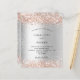 A faux silver metallic looking background. Decorated with rose gold faux glitter. Personalise and add your names and party details.