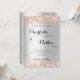 A formal wedding invitation with a faux silver looking background. Decorated with rose gold faux sparkles. Personalise and add your names and party details.