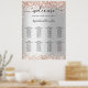 A seating board for a wedding. A stylish faux silver looking background decorated with rose gold confetti. Personalise and add the name of the bride and groom, add your guests names.