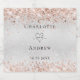 A faux silver looking background, decorated with rose gold confetti. Personalise and add your names and the wedding date.