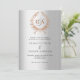 Silver rose gold wreath monogram luxury wedding invitation