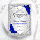 Quinceanera Party - Silver Invitation. Features stripes, script font, royal blue roses, tiara and confetti. Classy design with faux glitter silver foil. Perfect for an elegant glam celebration.