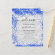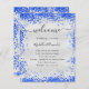 A faux silver background, decorated with royal blue confetti, sparkles. Black text. Personalise and add your names and the wedding program.