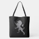 Silver Royal Lion on Black Tote Bag